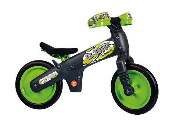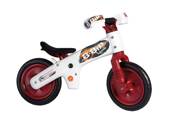 Pedál nélküli gyermekkerékpár. Fejleszti az egyensúlyérzéket, segítségével könnyebben tanulnak meg két keréken kerékpározni a gyerekek, így a későbbiekben feleslegessé válik a kitámasztó kerekek használata. Kényelmes, levehető és mosható ülésszivacs, könnyen tisztítható műanyag váz. Szerszám nélkül (érmével) állítható ülésmagasság. Minden apró részletében a gyerekek biztonságát szem előtt tartó dizájn: rejtett csavarok, szivacsozott, aláfordulás-gátlóval ellátott kormány, extra nagy kézvédő, küllő nélküli, defektmentes kerekek, mérgező anyagoktól mentes kivitel. Maximum teherbírás 30 kg, 2-5 éves korig használható. Szürke/narancs, szürke/pink, fehér/ pink, fehér/zöld vagy fehér/piros színekben.