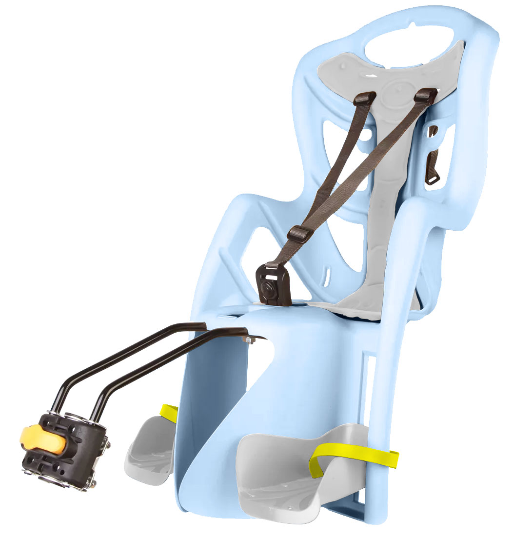 Hátsó gyermekülés. Univerzális (Multifix) konzollal a nyereg-vázcsőre rögzíthető. Egy kézzel ki / be csatolható biztonsági öv, tágas üléstér, pozícionálható lábtartók. Könnyen tisztítható, mérgező anyagoktól mentes műanyag váz, nagy szellőzőnyílásokkal. Mosható szivacsbetétek. A flexibilis tartócsövek elnyelik a rázkódást, így kímélik a gyermek hátát utazás közben. Szürke vagy bézs színben .