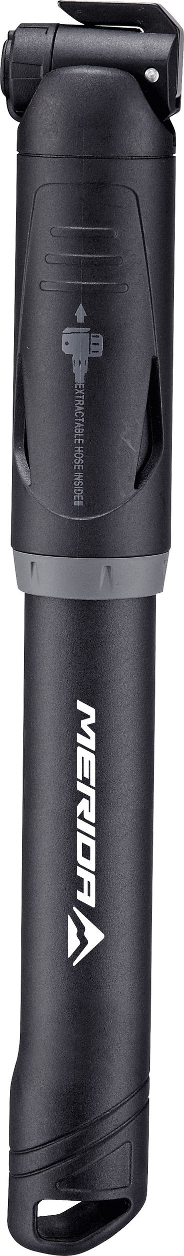 A MERIDA ECO MTB MINI pumpa elég kicsi ahhoz, hogy simán elférjen a zsebedben vagy a táskádban, mégis elég erős, hogy gond nélkül felfújd vele a gumit. Legfeljebb 80 psi / 5,5 bar nyomásig dolgozik, és könnyű, mégis tartós műanyagból készül. Mindössze 23,5 cm hosszú és 160 g, így tökéletes társ terepbringázás közben.