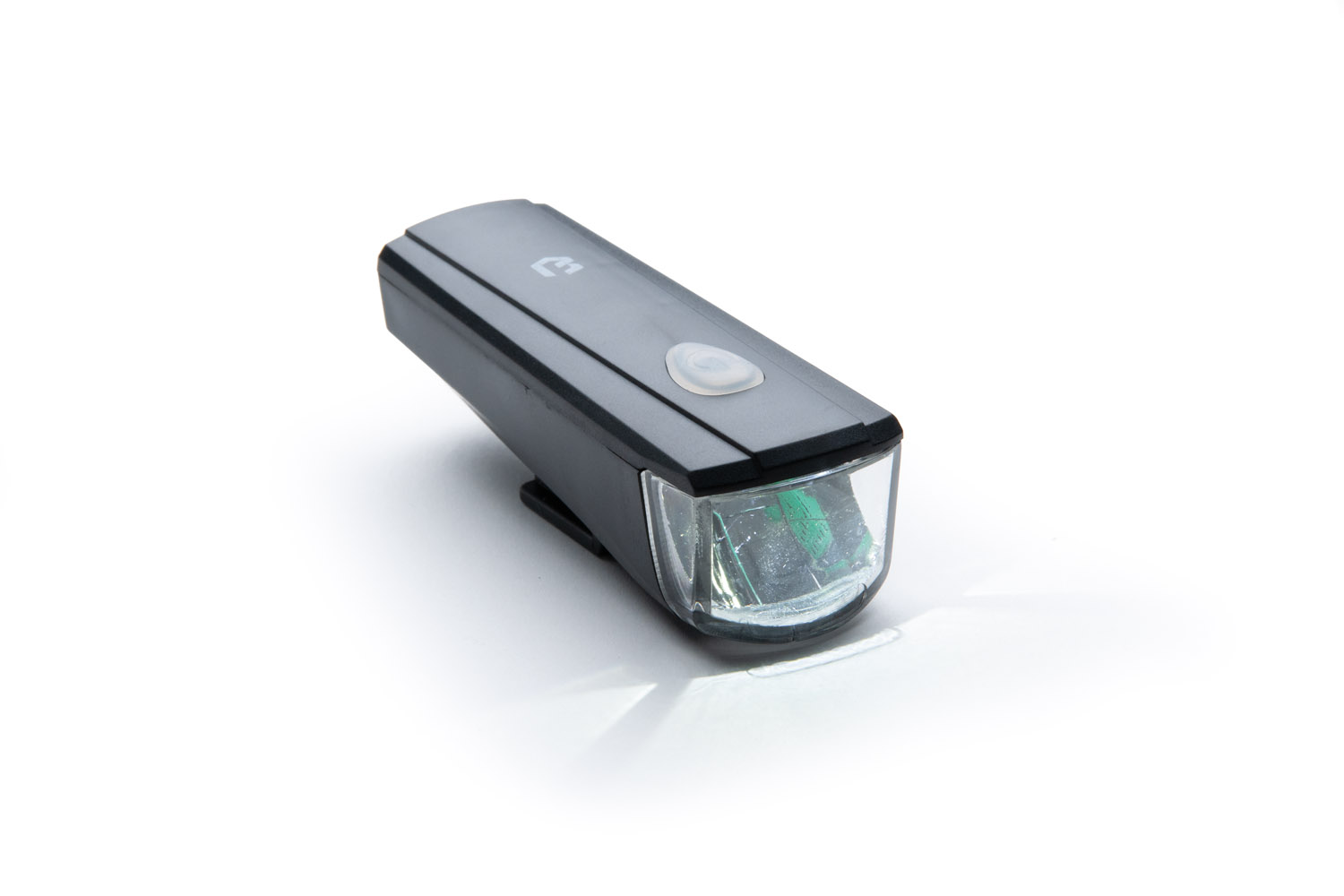 Kerékpáros első lámpa • 1 db nagy fényerejű 1 W-os LED • 2 funkciós (villog vagy folyamatos fény) • 3 db AAA elemmel működik • Szerszám nélkül rögzíthető 22.2–31.8 mm-es átmérőjű kormányra.